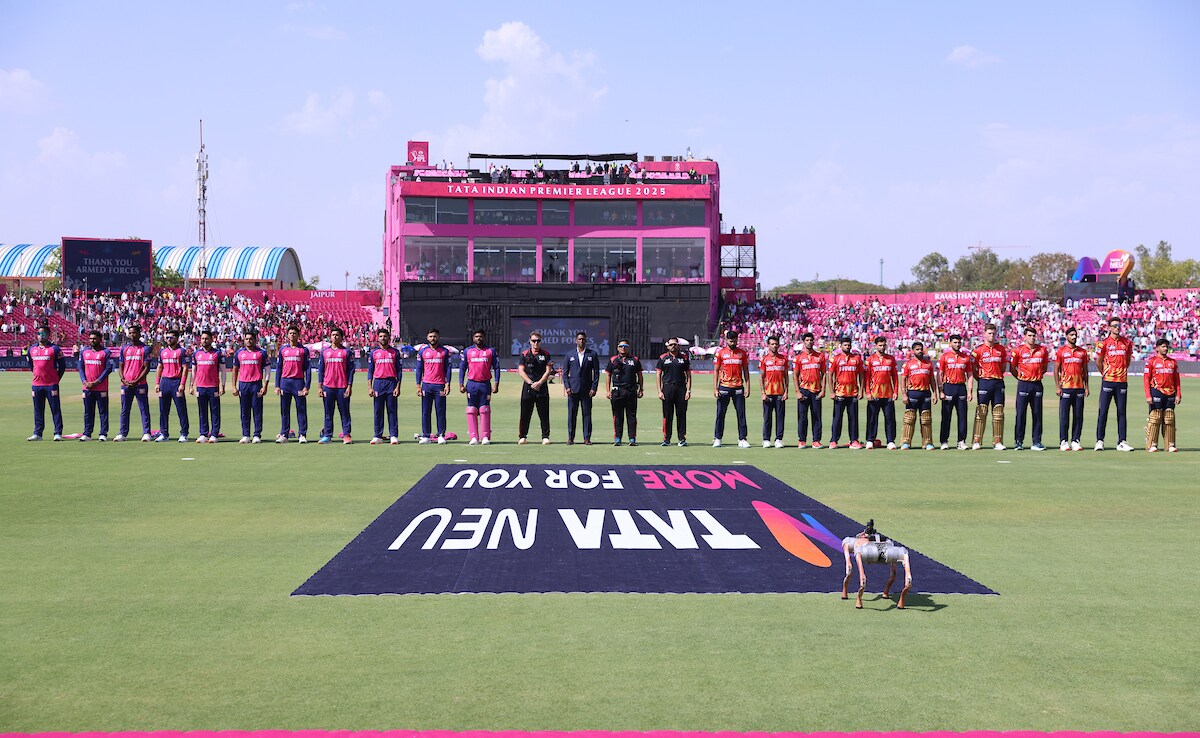 राजस्थान रॉयल्स आणि पंजाब किंग्ज या दोन्ही खेळाडूंनी भारतीय राष्ट्रगीतासाठी भारतीय सशस्त्र दलांना श्रद्धांजली वाहिली आणि सूनम-पीबीकेएस संघर्षानंतर, आयपीएल-पीबीकेएस संघर्षानंतर, आयपीएल-पीबीकेएस संघर्षाचा पहिला सामना करावा लागला. रॉयल चॅलेंजर्स बेंगळुरू आणि कोलकाता नाइट रायडर्स यांच्यात शनिवारी झालेल्या चकमकीला बंगालुरूमध्ये नाणेफेक न करता पाऊस पडल्याने धुतले गेले आणि आयपीएल रीस्टार्टच्या उत्साहाच्या उत्तेजनाची खळबळ उडाली.